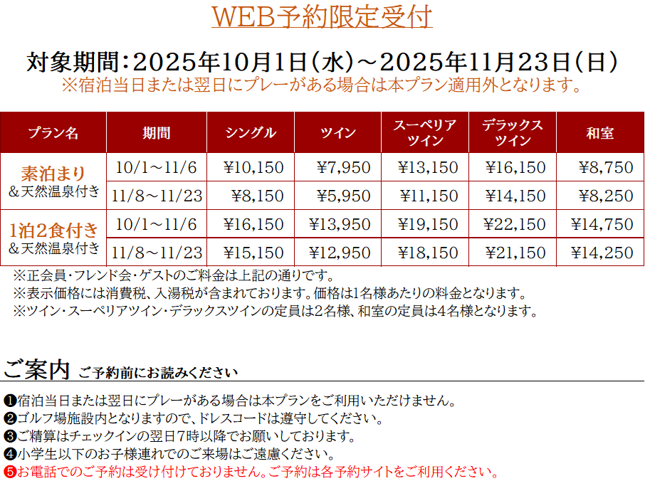 ”宿泊のみ” でご利用いただける秋のステイプラン!!